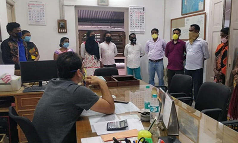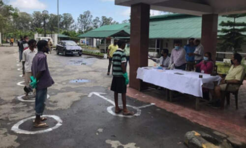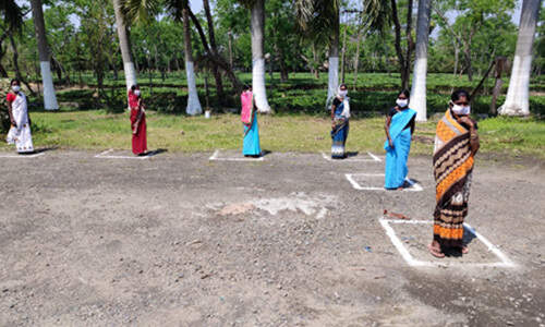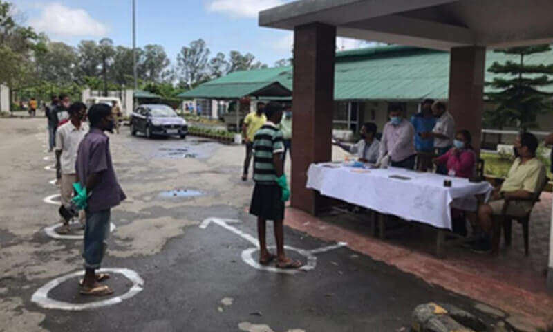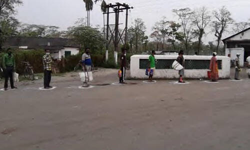 Social distancing being maintained during wage distribution
