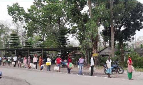 Social distancing being maintained during ration distribution