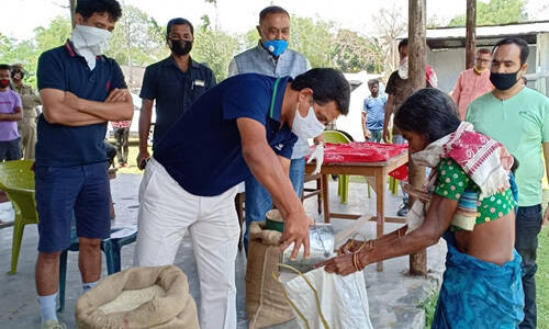 On 11th Apr 2020, 11000 kgs of rice was distributed among garden workers at Bargang with the help of the local Minister