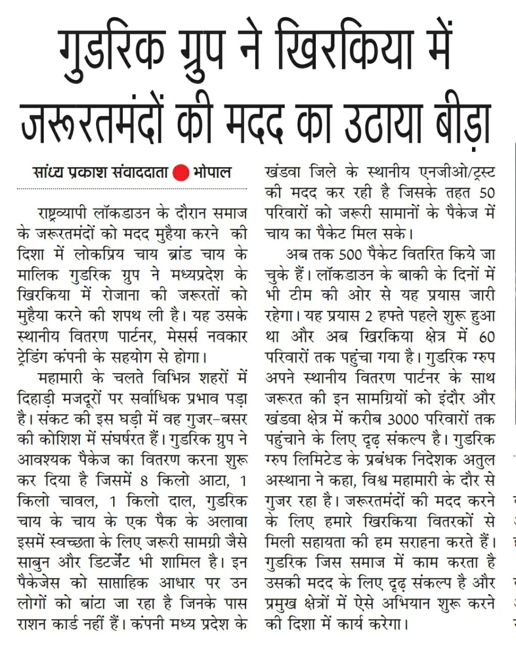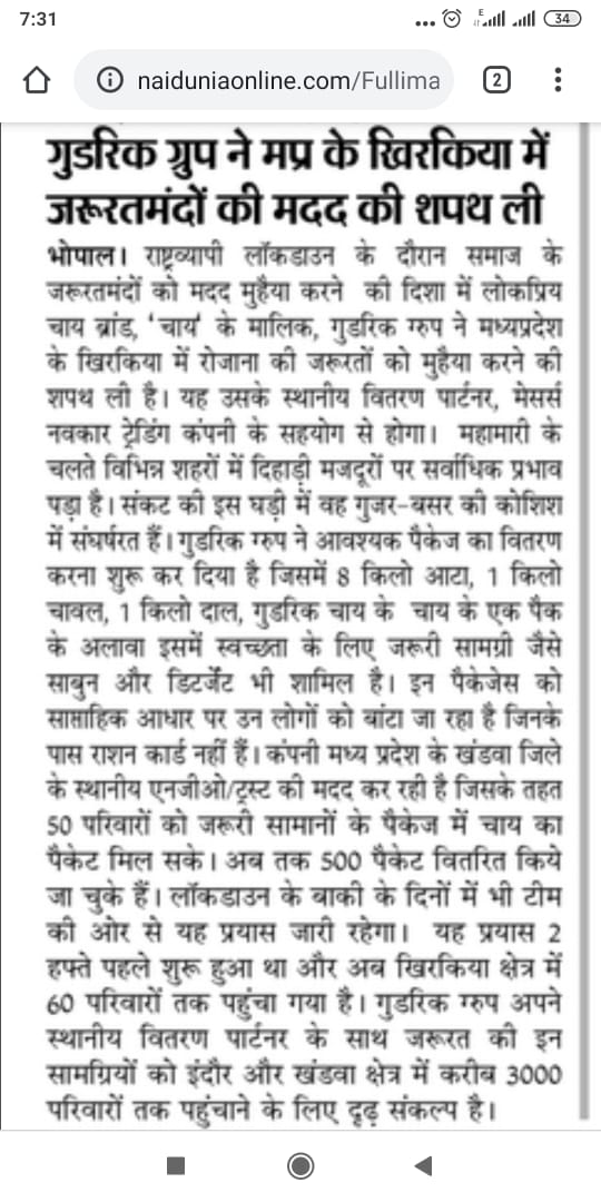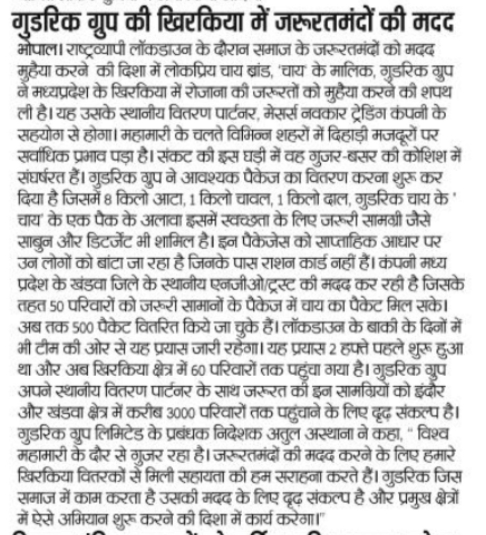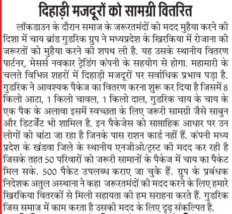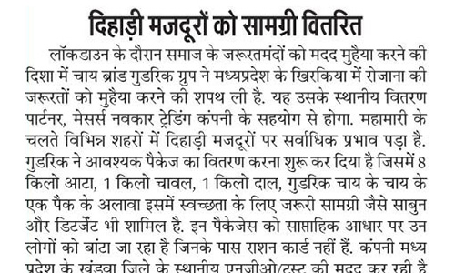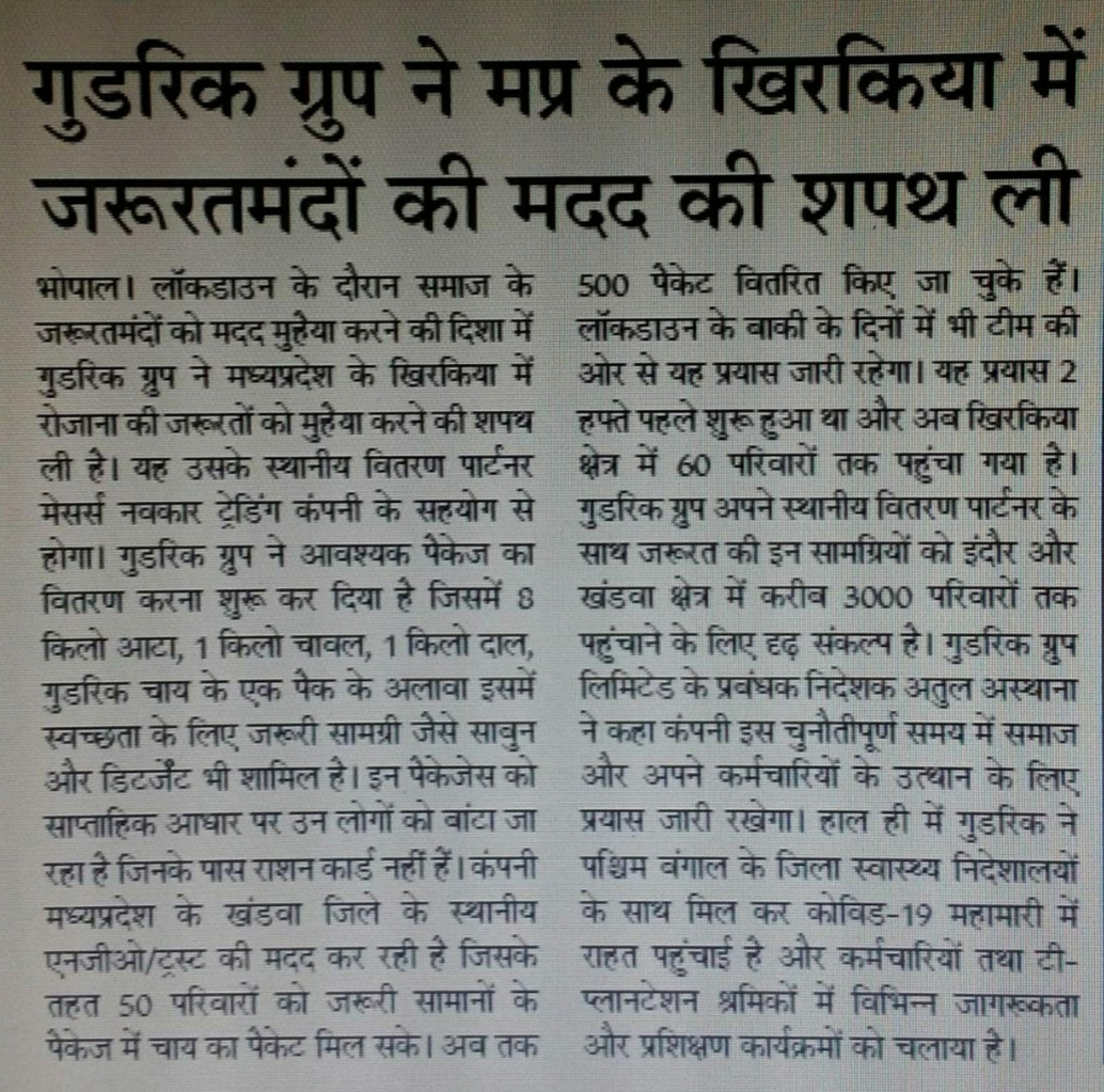 On 9th April 2020, Amgoorie distributed food packets to 50 poor & needy families