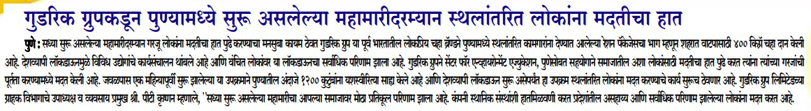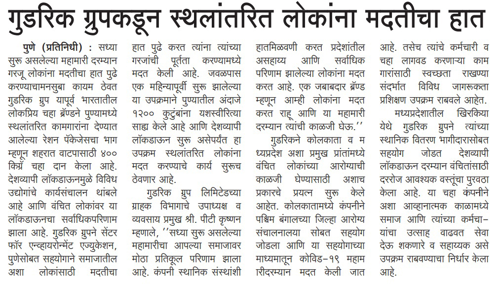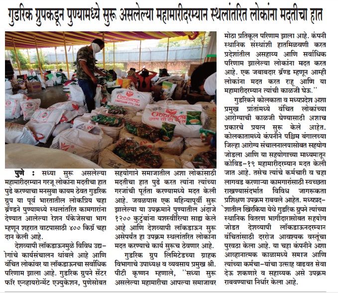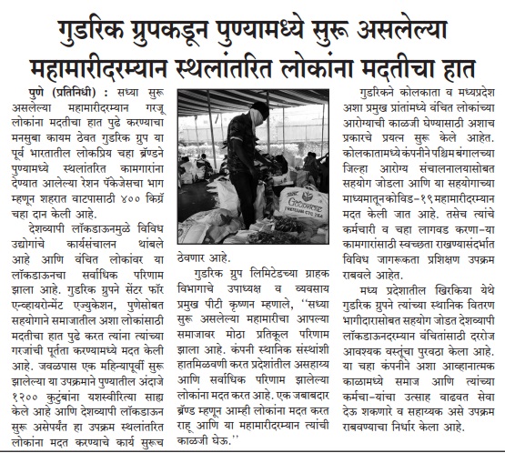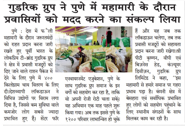 Goodricke Group pledges to help migrants during ongoing pandemic in Pune