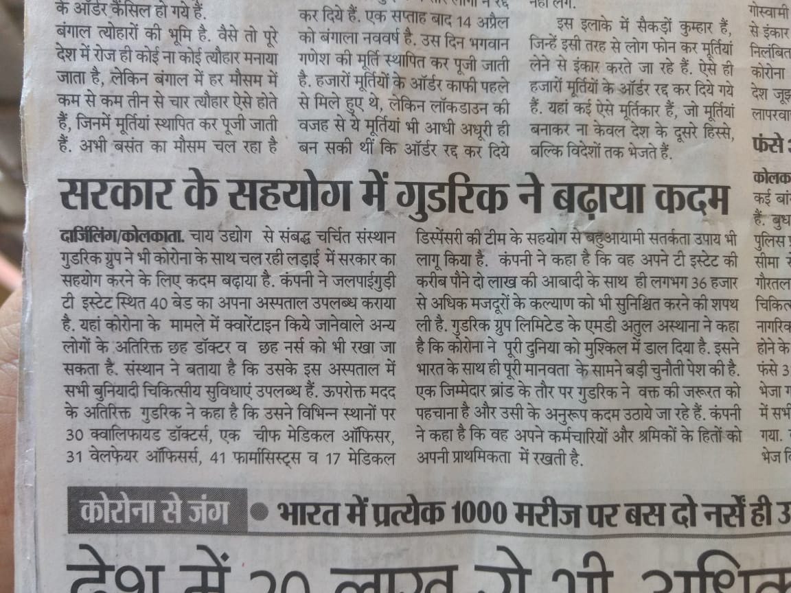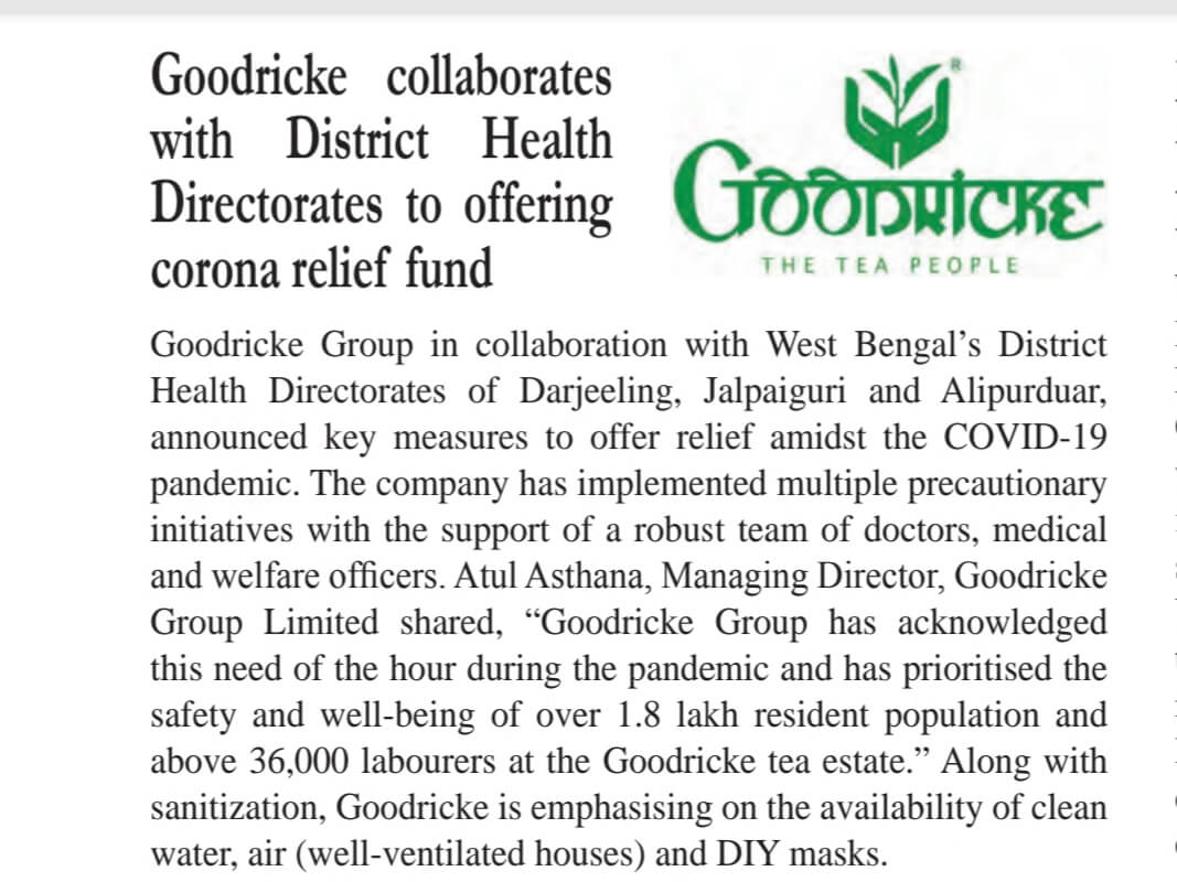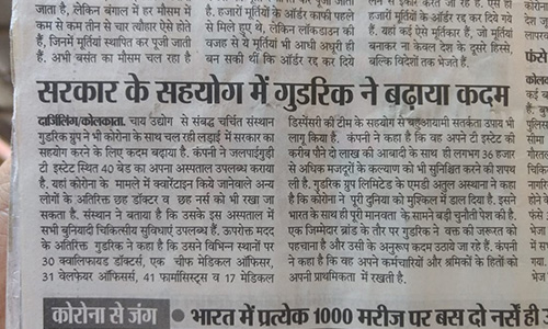 NONAIPARA: On 20th April 2020, the Executive Magistrate along with the Block Program Manager visited the garden and handed over 12,600 masks for the workers this morning. They were satisfied with the Garden’s preparedness to combat COVID-19