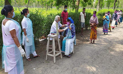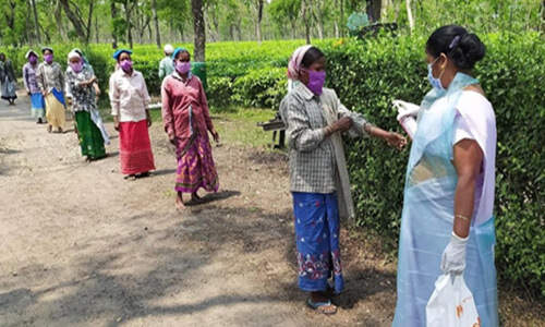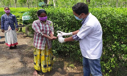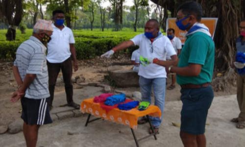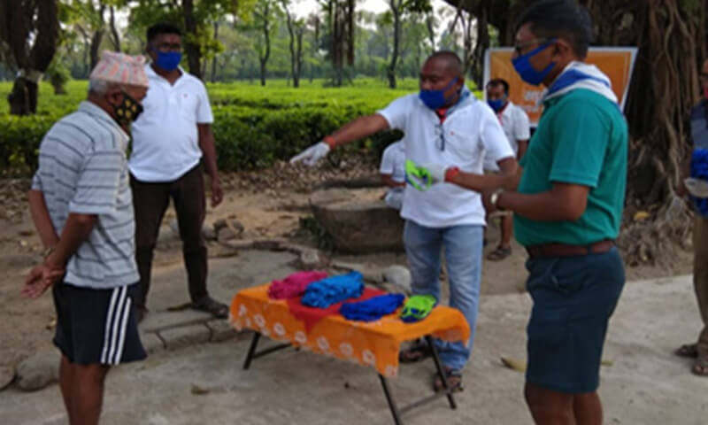 Masks being distributed in Chalouni Tea estate