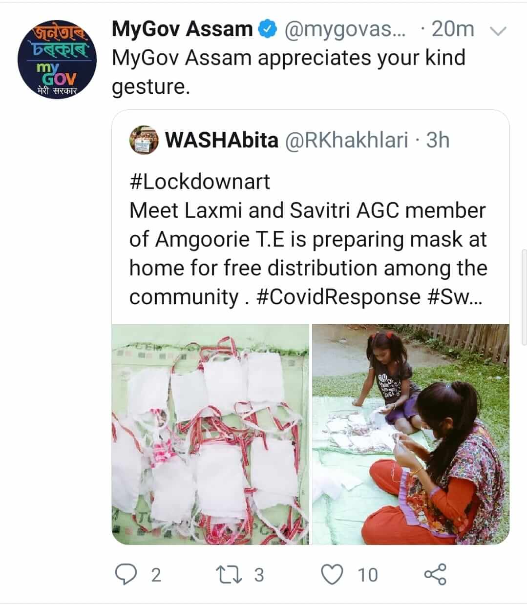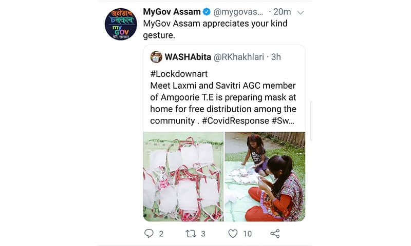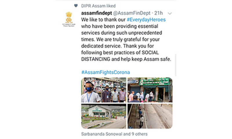 Appreciation by Govt of Assam and other agencies on their official social media handles